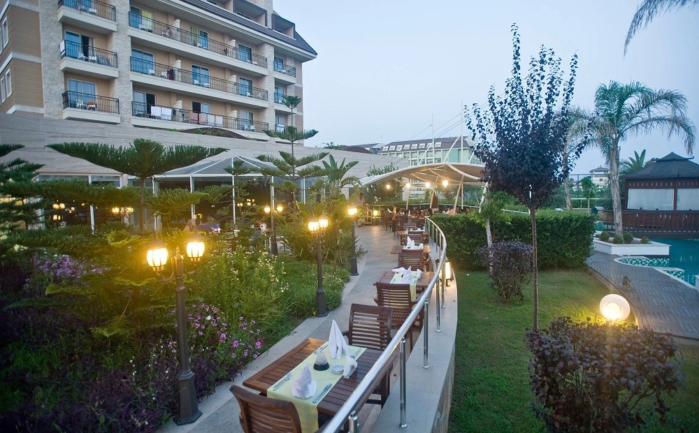 Sabah kahvaltısı, öğle yemeği ve akşam yemeği açık büfe olarak servis ediliyor. Tesis içerisindeki a la carte restoranlarda; Balık, Türk ve İtalyan mutfaklarından lezzetler, usta şefler tarafından titizlikle hazırlanıyor.